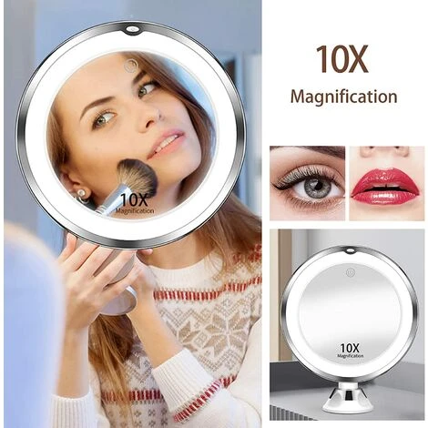 Eingebauter leistungsstarker Saugnapf und 360-Grad-Drehgelenk; Der beleuchtete Vergr??erungsspiegel kann auf einer glatten, flachen und sauberen Oberfl?che wie einem Tisch, einem Fenster und sogar einem gr??eren Spiegel montiert werden. Gut f��r Badezimmer, Reisen