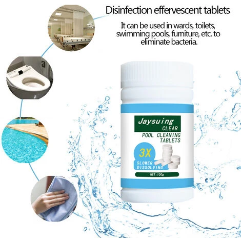 - Eigenschaften:Diese Schwimmbad-Reinigungstabletten k?nnen helfen, die von Ihnen verwendete Menge an Algizid und Flockungsmittel zu reduzieren. Hilft, Algen vorzubeugen und die Klarheit des Wassers zu verbessern. Enth?lt Cyanurs?ure (Stabilisator), damit es nicht durch Sonnenlicht abgebaut wird ; Sorgen Sie f��r eine konstante Chlordosis. Legen Sie die Tabletten in den schwimmenden Spender und nehmen Sie ihn vor dem Schwimmen heraus. Legen Sie die Platten niemals direkt in den Pool, da sie die Auskleidung besch?digen k?nnen. Technische Daten: Artikeltyp: ChlortablettenFarbe: Wei?Gr??e (DxH): ca. 1,5 x 0,5 cmMenge: 50 St��ck/BeutelDosierung: Verwenden Sie 2 Gramm dieses Produkts pro Tonne Wasser, kann die effektive Chlorkonzentration im Wasser um 1 ppm erh?hen. Zu Beginn der Badesaison ist eine Schockdesinfektion erforderlich. Wenn Algen im Wasser auftreten, f��gen Sie 6-10 g / Tonne Wasser hinzu Zeiten;T?gliche Wartung: 2g/ Tonne Wasser/Tag.Paket beinhaltet: 50 St��ck/Beutel* ChlortablettenHinweise: ?bergang: 1 cm = 10 mm = 0,39 Zoll Bitte erlauben Sie 1-3 cm Messabweichung aufgrund manueller Messung.