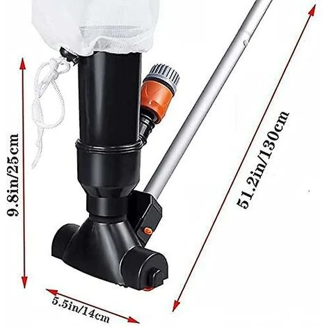 ��Funktionsprinzip��— Dieser leicht zu reinigende Unterwasserreiniger. Der Monteur wird nur mit Wasserdruck aus dem Gartenschlauch (nicht im Lieferumfang enthalten) betrieben. Das Wasser aus dem Schlauch tritt in den Staubsauger ein und erzeugt eine Saugwirkung. Das schnelle Aufsammeln der Bl?tter im Pool kann gut funktionieren. ��Leicht zu reinigen. Verwendung�� — Es ist mit einer 5-teiligen Stange und einem sauberen Netzbeutel ausgestattet. Einzigartiges Design, einfach zu bedienen. zu reinigen und zu transportieren. Es ist sehr gut geeignet f��r die Reinigung von Schwimmb?dern, Spas, Whirlpools; Whirlpools, Teiche und Springbrunnen. Wassersparend, kein Entleeren des Pools zum Reinigen erforderlich.