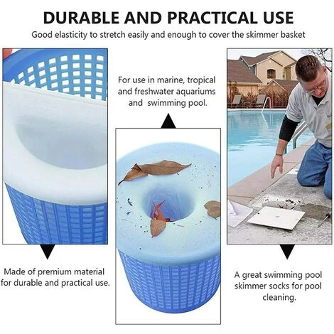 EINFACH ZU INSTALLIEREN: Unsere Pool-Skimmer-Socken sind hochelastisch und passen zu den meisten Arten von Poolpumpen, Filterkörben, Poolkörben oder Siebkörben. Alles, was Sie tun müssen, ist, sie über Ihren Skimmerkorb zu spannen, den Korb zu ersetzen und die Poolsocken regelmäßig auszutauschen.