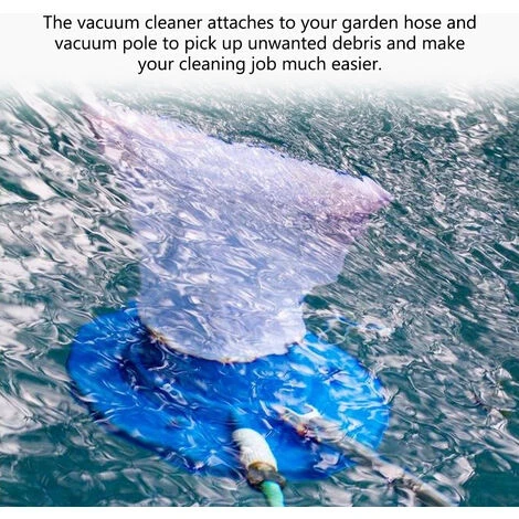 Der Staubsauger wird an Ihrem Gartenschlauch und Staubsaugerstab befestigt, um unerwünschte Rückstände aufzunehmen und Ihre Reinigungsarbeiten erheblich zu vereinfachen.