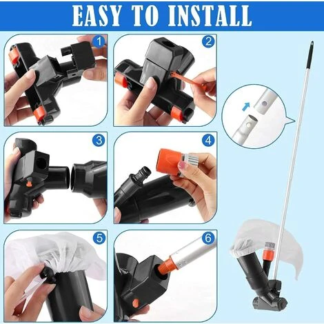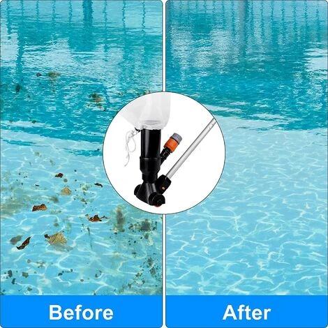 couleur comme indiquéTaille:34.1 x 19.4 x 8.5 cmPoids:430 grammes【ASPIRATEUR DE PISCINE PORTABLE】 — L’aspirateur à jet de piscine est fabriqué en plastique ABS de haute qualité pour assurer une durabilité maximale. Son fond est équipé de 2 roues pour faciliter le nettoyage. VEUILLEZ NOTER : parce que la conception de cette entrée d’eau ne s’applique PAS avec un tuyau avec un adaptateur/raccord fileté ! PAS DE BROSSE INCLUS.【PRINCIPE DE FONCTIONNEMENT】 — Ce nettoyeur sous-marin facile à assembler est simplement alimenté par la pression de l’eau d’un tuyau d’arrosage (non inclus). L’eau du tuyau pénètre dans le vide et crée un effet d’aspiration. Cela pourrait bien fonctionner pour ramasser rapidement les feuilles dans la piscine.【FACILE À UTILISER】 — Il est conçu avec des poteaux à 5 sections, et un sac en filet de nettoyage. Conception unique, facile à nettoyer et à transporter. Idéal pour nettoyer les piscines, les spas, les bains à remous, les étangs et les fontaines, etc. Économie d’eau, pas besoin de vider la piscine pour nettoyer.【APPLICATION】 — L’aspirateur de piscine fonctionne bien pour les points de ramassage rapide dans la piscine et dans les petits plans d’eau comme les piscines hors sol, les bassins anti-éclaboussures, les étangs, les fontaines, les spas et les jeux d’eau.
