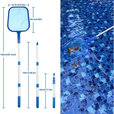 HIASDFLS Schwimmkescher (tiefer Kescher), Schwimmbecken-Skimmer Mit 90-Aluminium-Teleskopstange Für Schwimmbecken, Teiche, Aquariu, Heiße Quellen, Springbrunnen, Teich