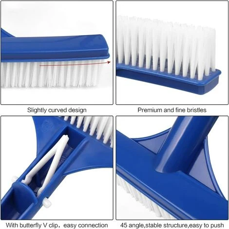 — Sie ist leicht und einfach zu bedienen, Sie müssen es nur mit der Teleskop-Schwimmbadstange verbinden, einmal installiert, fällt es nicht herunter. — Mit dieser Schwimmbad-Reinigungsbürste können Sie Verschmutzungen perfekt von der Wand entfernen. Boden, Ecken, Ritzen, sogar hartnäckiger Schmutz und Moos können leicht gereinigt werden.