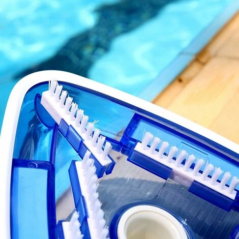 Dieses Vakuum-Schwimmbad-Reinigungswerkzeug, der humanisierte Griff, hat federbelastete Verriegelungsclips zum Anbringen von Standard-Verlängerungsstangen, sehr praktisch. Der dreieckige Kunststoffkörper ist manövrierfähig und kann für eine vollständigere Reinigung entlang von Wänden und in Ecken zielgenau saugen. Nylonborsten mit hoher Zähigkeit und hoher Dichte helfen dabei, hartnäckigen Schmutz und Algen leicht zu entfernen. Sie können es versuchen.