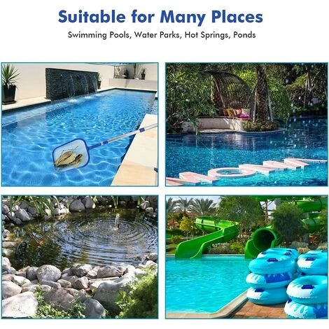 Material duradero: esta red para desnatador de piscina es hecho de un marco más robusto que es duradero y no se romperá ni se volverá quebradizo. El poste de la piscina está hecho de aleación de aluminio y no se dobla ni se rompe bajo tensión.