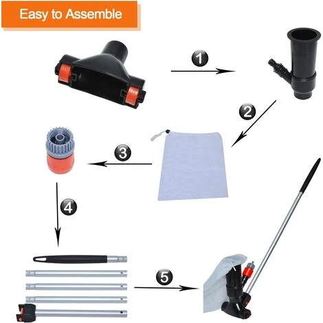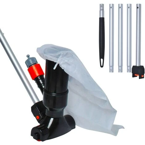Der Unterwasser-Laubsauger für Pools nutzt den Wasserdruck aus dem Gartenschlauch, um Blätter und Schmutz aus dem Pool in den Netzbeutel zu saugen.