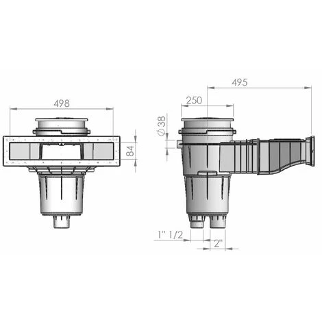 Anschluss: 2″ und 1 1/2″ Innengewinde (senkrechter Abgang)