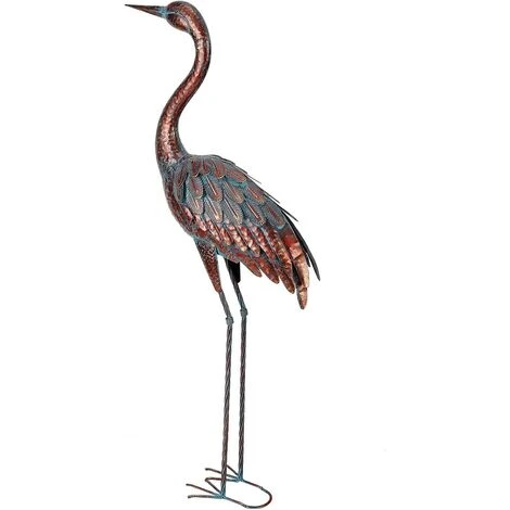 Die Kranich-Statue aus Metall ist mit einem Patina-Bronze-Finish versehen, um ihr ein verwittertes Aussehen zu verleihen. br> Kranich-Gartenskulpturen in Lebensgröße (16,92″WX7.48″DX48.03″H) lassen es realistisch und detailliert aussehen.