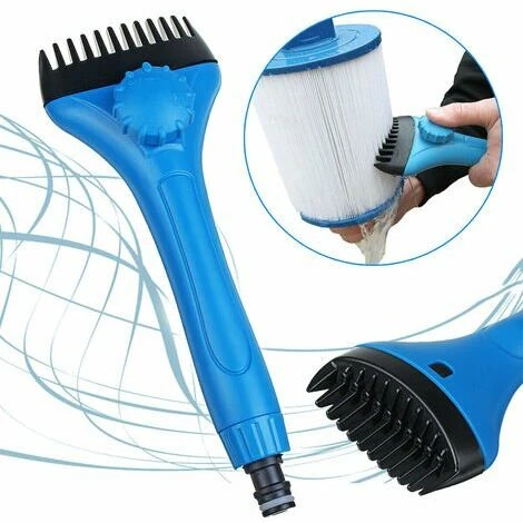 3. Schließen Sie ihn einfach an Ihren Standard-Gartenschlauchanschluss an und das Wasser spritzt mit einer kraftvollen Hochgeschwindigkeitsbewegung entlang jeder Rille, um Ihren Spa- oder Poolfilter gründlich zu reinigen.