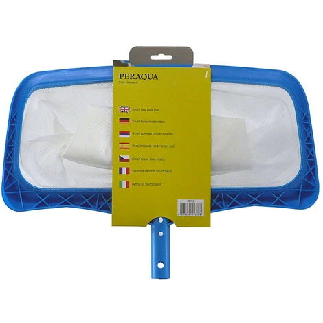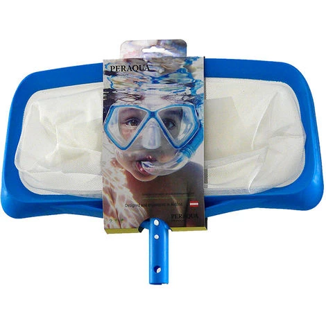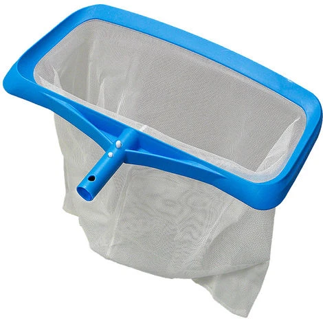 mit tiefem Netz, stabilem blauem Rahmen und abgewinkelter Aufnahmelippe für Pool oder Teich.