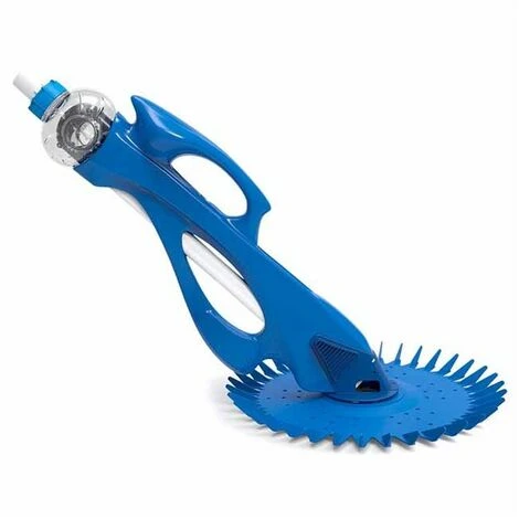 Es funktioniert durch Saugen und benötigt keinen Stromanschluss, da es die Saugleistung der Kläranlage des Schwimmbeckens nutzt.