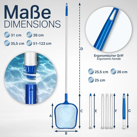 tillvex Pool Kescher Set | Pool Reinigungsset mit Teleskopstange 122 cm | Laubkescher feinmaschig | Poolkescher zur Reinigung von Schwimmbad Whirlpool Spa